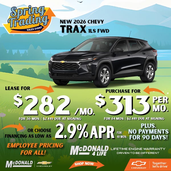 Stk# TC080247. MSRP $24,490. 36-month lease for current 2021 model year or newer GM or non-GM lessees with approved credit, $2,449 due at signing, $0 security deposit, and 10K miles/year ($.25 per mile thereafter). Purchase payment based on 6.99% APR for 84 mos. at $15.09/mo. per $1,000 financed with approved credit and $2,449 down. Pricing subject to change per GM incentives. All payments shown include GM Employee Discount, all GM rebates, and GM Card Sign & Spend. Plus tax & license fees. 2.9% APR for 48 mos. financed at $22.09/mo. per $1,000 financed + 90-day payment deferral with approved credit through GMF, in lieu of other offers. Interest accrues from date of contract. Residential restrictions may apply. Subject to prior sale. Picture for illustration purposes only. See dealer for complete details. Take delivery by 04/30/2026.