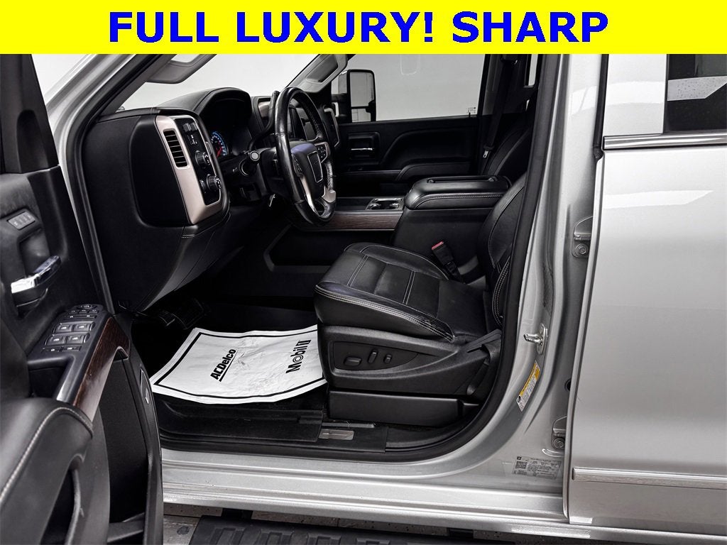 Allison 1000 6-Speed Automatic, 4WD, Jet Black Leather, 110-Volt AC Power Outlet, 150 Amps Alternator, 8 Multi-Color Customizable Driver Display, Auto-Dimming Inside Rear-View Mirror, Chrome Bodyside Moldings, Chrome Door Handles, Chrome Power-Adjustable Heated Outside Mirrors, Chrome Recovery Hooks, Color-Keyed Carpeted 1st & 2nd Row Floor Mats, Color-Keyed Carpeting Floor Covering, Deep-Tinted Glass, Driver & Front Passenger Visors, Driver Alert Package, Dual-Zone Automatic Climate Control, Duramax Plus Package, Electric Rear-Window Defogger, Electronic Shift Transfer Case, EZ-Lift & Lower Tailgate, Forward Collision Alert, Front Body-Color Bumper, Front Frame-Mounted Black Recovery Hooks, Front Halogen Fog Lamps, GMC 4G LTE, GMC Connected Access, Gooseneck/5th Wheel Prep Package, HD Radio, Heated & Ventilated Front Seating, Lane Departure Warning System, Leather Wrapped Heated Steering Wheel, Manual Tilt-Wheel/Telescoping Steering Column, Navigation System, OnStar & GMC Connected Services Capable, Power Adjustable Pedals, Power Sliding Rear Window w/Defogger, Power Windows, Preferred Equipment Group 5SA, Rear 60/40 Folding Bench Seat (Folds Up), Rear Body-Color Bumper w/Bumper CornerSteps, Rear Vision Camera, Rear Wheelhouse Liners, Remote Keyless Entry, Remote Locking Tailgate, Remote Vehicle Starter System, Single-Slot CD/MP3 Player, Standard Suspension Package, Steering Wheel Audio Controls, Trailering Equipment, Ultrasonic Front & Rear Park Assist, Unauthorized Entry Theft-Deterrent System, Universal Home Remote.